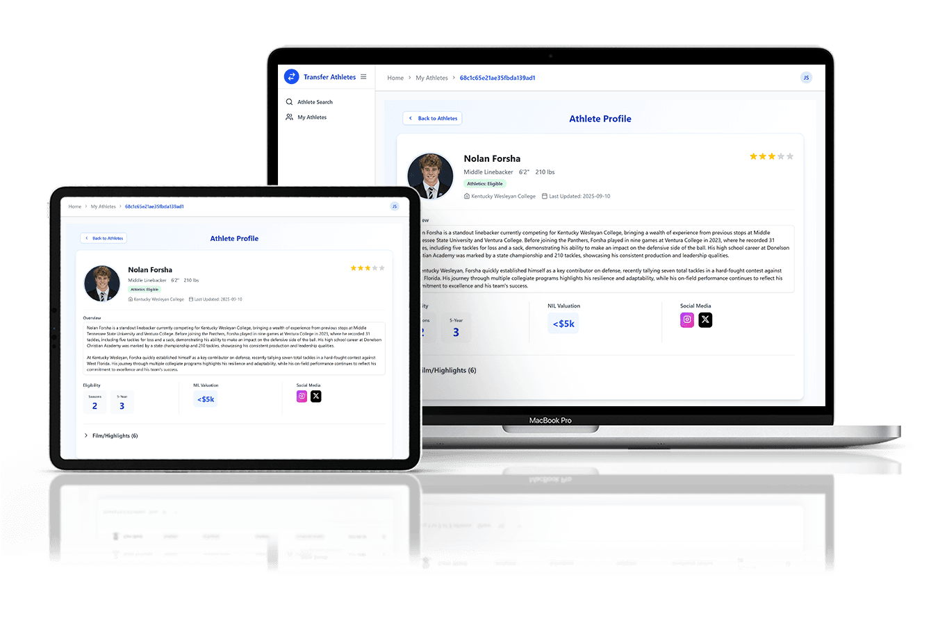 Compare athletes with stats, film, NIL projections, and rank your prospects to make smarter recruiting decisions.